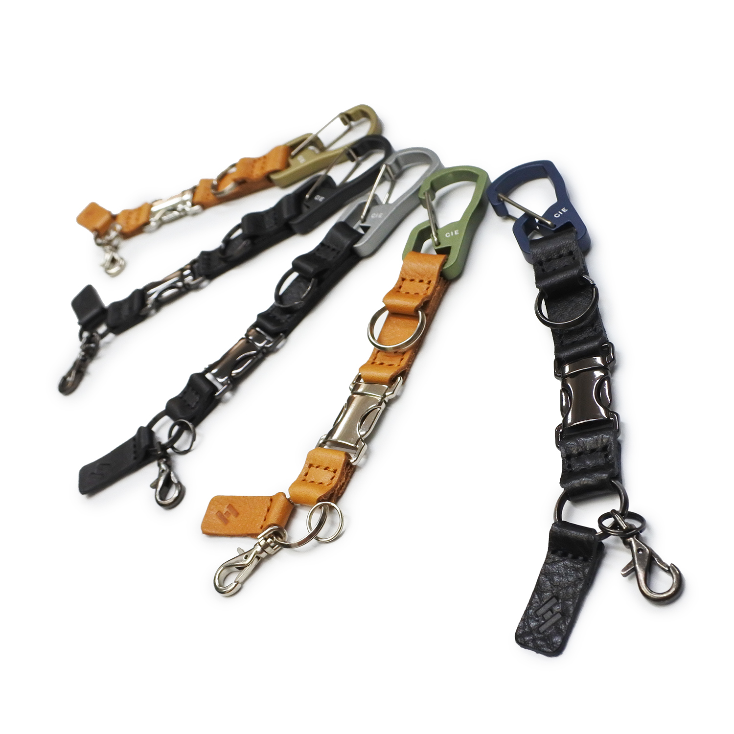 本体素材にアルミニウムを使用したCIEオリジナルカラビナです。素材にアルミニウムを採用する事で軽量でありながら錆びにくいという特性があります。フレーム部分は一体成型によりなめらかな仕上がりとなっております。厚みのあるアルミニウム板を型抜きしエッジ部分を研磨し、仕上げにアルマイト塗装を施したミリタリーライクなオリジナルカラー展開となっております。構造は1つのゲートで2室となっており、下層部は鍵など抜けにくい構造となっております。カラビナにオイルドカウレザーによるストラップを付け実用性を上げた商品になります。
